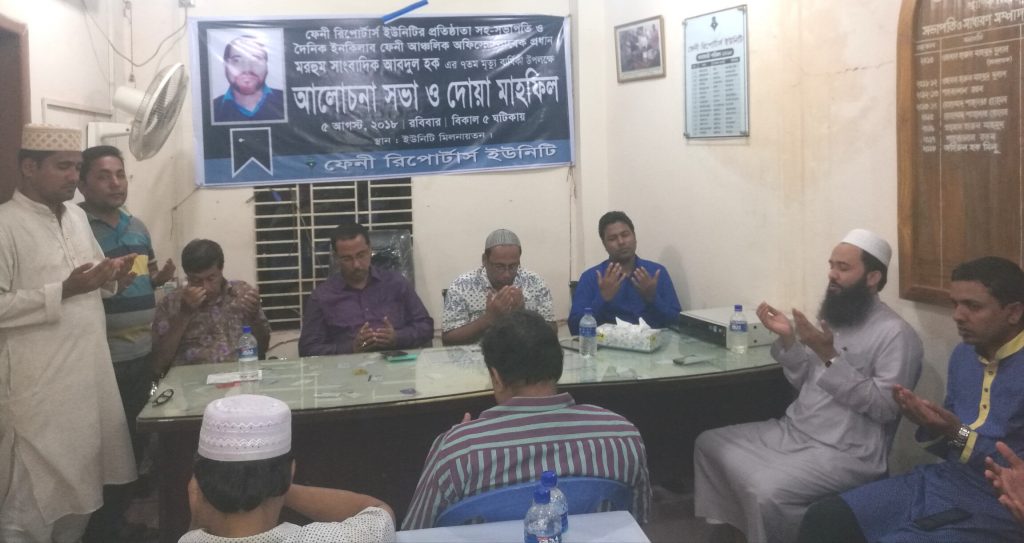 পরে দোয়া মাহফিলে সাংবাদিক আব্দুল হক’র আত্মার মাগফেরাত কামনাসহ দেশ ও জাতির কল্যাণ কামনা করা হয়। দোয়া পরিচালনা করেন ফেনী কেন্দ্রীয় জামে মসজিদের ইমাম সাইফুল্লাহ।