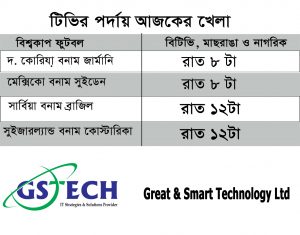 খেলাধুলা টিভির পর্দায় আজ যে খেলা দেখবেন জিএস নিউজজিএস নিউজ প্রকাশিত হয়েছেঃ ০৩:২১ পিএম, ২৭ জুন ২০১৮ 0SHARES নিজস্ব প্রতিবেধন:>>> আজ টেলিভিশনের পর্দায় যে খেলাগুলো দেখতে পাবেন: বিনোদন, লাইফস্টাইল, তথ্যপ্রযুক্তি, ভ্রমণ, তারুণ্য, ক্যাম্পাস নিয়ে লিখতে পারেন আপনিও- gsnewsfeature@gmail.com আপনার মতামত লিখুন : আরও পড়ুন কাজিরবাগ ব্লাড ডোনেট ক্লাবের পক্ষ থেকে গরু কোরবানি! সব খেলোয়াড়দের করোনা পরীক্ষা করিয়েছে বার্সেলোনা বার্সেলোনা কেউ যা করেনি এবার তাই করে দেখালেন আশরাফুল
