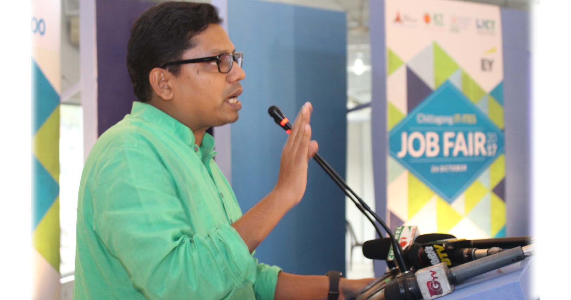 জুনাইদ আহমেদ পলক বলেন, ডিজিটাল বাংলাদেশের লক্ষ্য ২০২১ সালের মধ্যে আইটি-আইটিইএস খাতে রফতানি আয় ৫ বিলিয়ন ডলারে উন্নীত করা এবং ২০ লাখ তথ্যপ্রযুক্তি পেশাজীবী গড়ে তোলা। এ লক্ষ্য পূরণে আমরা ফেব্রুয়ারিতে ঢাকায় চাকরি মেলার আয়োজন করি। সে ধারাবাহিকতায় আজকের এ আয়োজন। আশা করছি আগামীতে এ ধরনের আয়োজন আমরা দেশের বিভিন্ন প্রান্তে নিয়ে যাব।